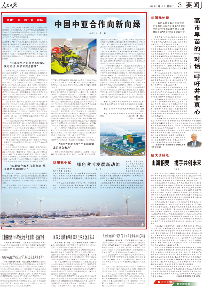 2月10日,《人民日报》“共建‘一带一路’·第一现场”专栏,刊发文章《中国中亚合作向新向绿》,对中国能建总承包建设的乌兹别克斯坦塔什干光储项目进行深度报道。